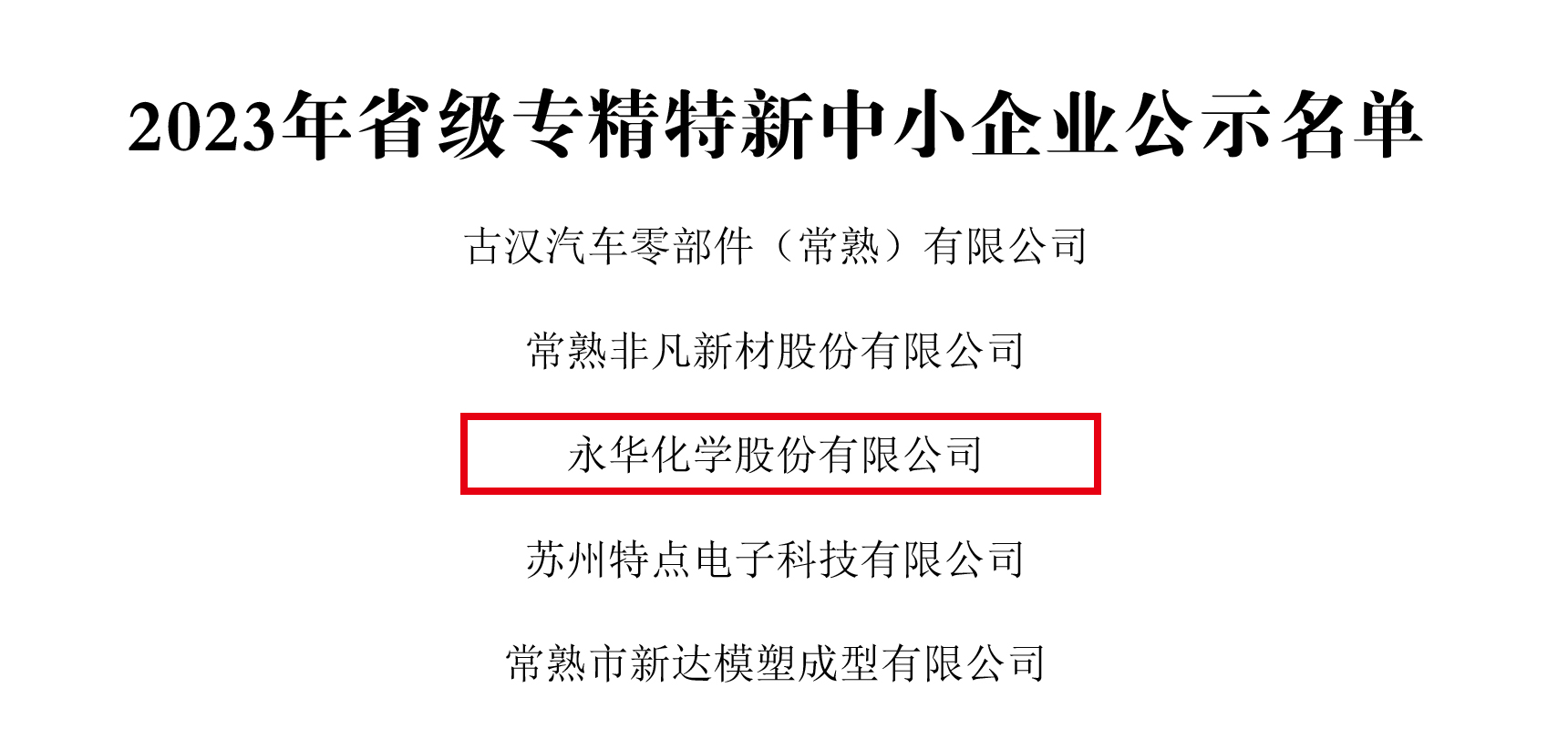 近日,江蘇省工業(yè)和信息化廳公布了《關于江蘇省2023年專精特新中小企業(yè)和2020年度專精特新企業(yè)復核通過企業(yè)名單的公示》。經(jīng)專家評審及各項綜合評定,永華化學股份有限公司獲評“江蘇省專精特新中小企業(yè)”。