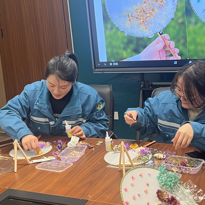 活動(dòng)現(xiàn)場(chǎng),女員工代表們齊聚一堂,親手制作專屬團(tuán)扇。大家充分發(fā)揮創(chuàng)意和想象力,將春日的美好祝愿融入扇面,一幅幅精美的團(tuán)扇作品在指尖綻放。